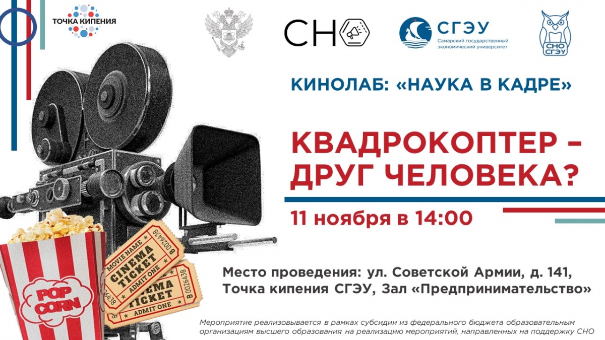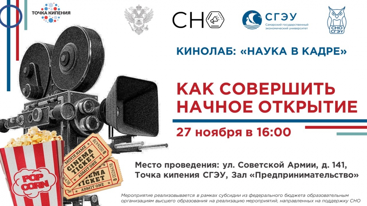 СНО СГЭУ совместно с Точкой кипения СГЭУ запускает Кинолаб: "Наука в кадре"!