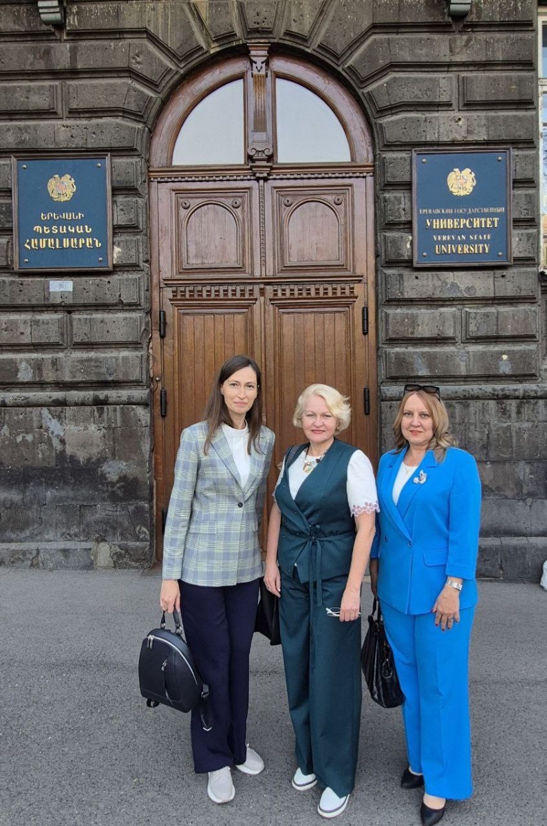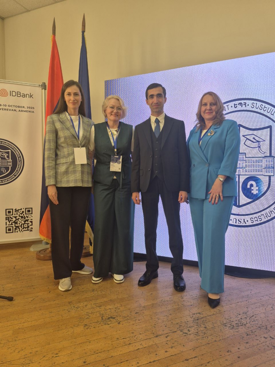 8-10 октября 2025 г. делегация научных сотрудников Центра изучения стран Азии, Африки и Латинской Америки, преподавателей кафедры региональной экономики и управления СГЭУ – Хмелева Галина Анатольевна, Курникова Марина Викторовна и Чиркунова Екатерина Константиновна – приняли участие в престижной международной конференции «Трансформационная экономика: развитие человеческого капитала, совместно-созидательная инновационная экономика и устойчивый инклюзивный рост», организованной Ереванским государственным университетом. Открыл конференцию декан факультета экономики и менеджмента ЕГУ Карлен Хачатрян, который в своей приветственной речи обозначил ключевые цели конференции – поиск практических решений для перехода к экономике, основанной на знаниях, инновациях и устойчивом развитии. Мероприятие собрало более 100 ученых из 18 стран мира – Ирана, Индии, США, Грузии, Нидерландов, Франции, Италии и др. стран – для обсуждения ключевых вызовов современности, что создало уникальную площадку для глубокого и содержательного диалога.