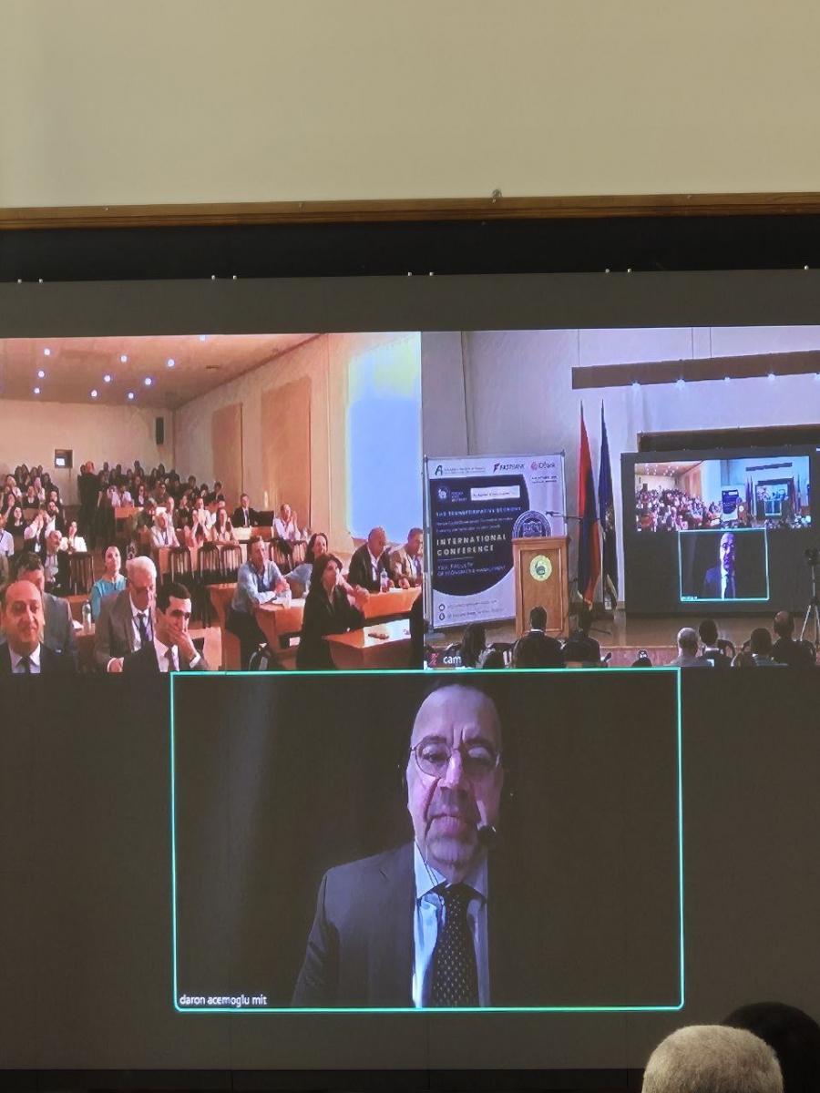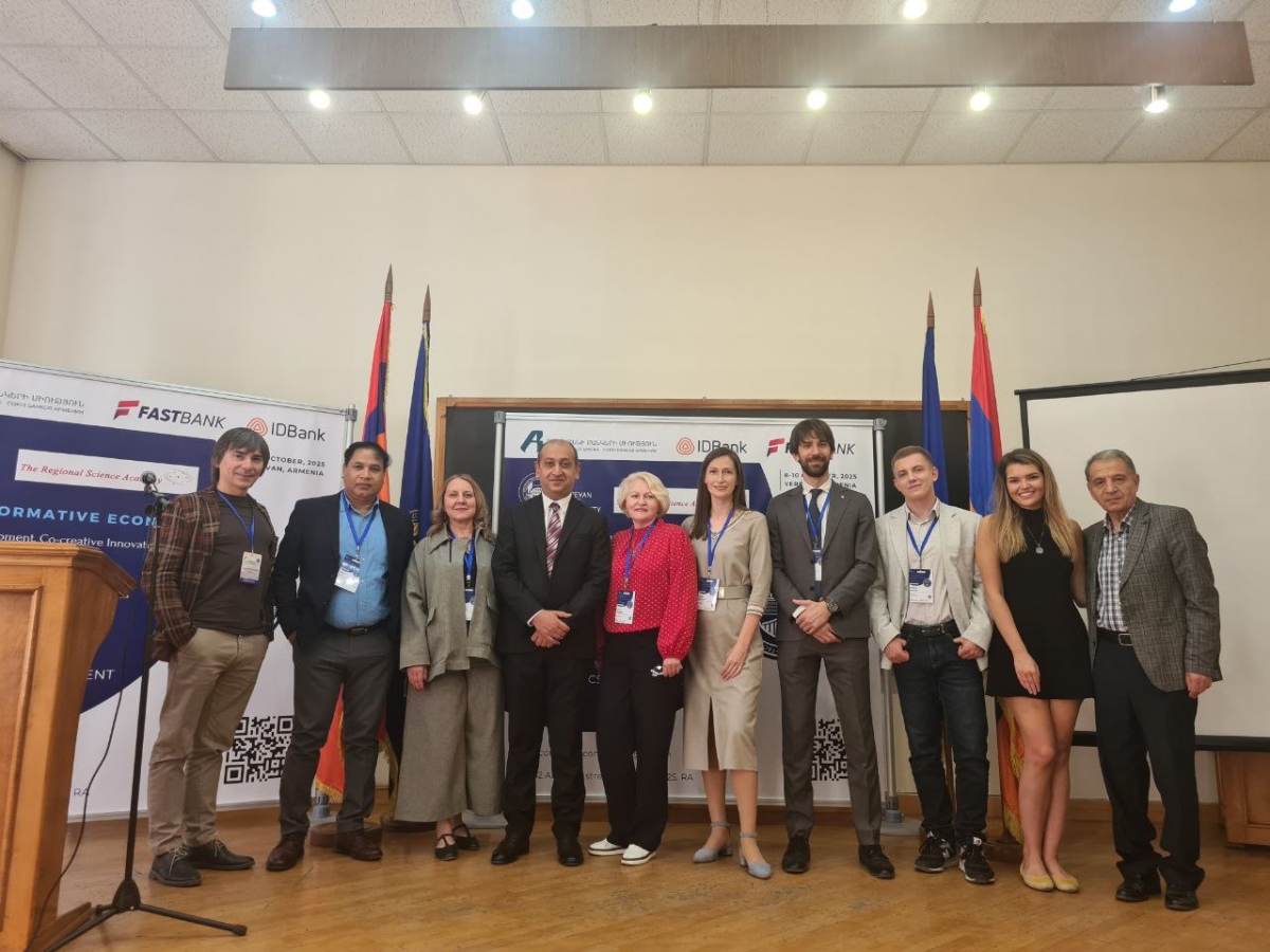 В рамках сессии «Глобальные экономические тренды и политика» ученые СГЭУ представили исследование на тему «Санкции против России и их трансформационное влияние на внутрирегиональную торговлю в рамках ЕАЭС: адаптация, уязвимости и глобальные уроки», подготовленное в рамках государственного задания Минобрнауки РФ по теме № 123101700401–0 (шифр FSSR-2023–0003). В своем выступлении они затронули вопросы изменения потоков товаров, перестройки логистических цепочек, а также стратегий адаптации, которые вырабатывают страны-члены ЕАЭС в новых условиях. Особый акцент был сделан на выявленных структурных уязвимостях и тех уроках, которые можно извлечь для повышения устойчивости экономических интеграций в глобальном масштабе. Доклад вызвал живой интерес и оживленную дискуссию среди участников конференции. Вопросы и комментарии аудитории, в которую входили ученые из Европы, Азии и самой Армении, позволили взглянуть на проблему под разными углами и обсудить дальнейшие перспективы развития евразийской экономической интеграции.